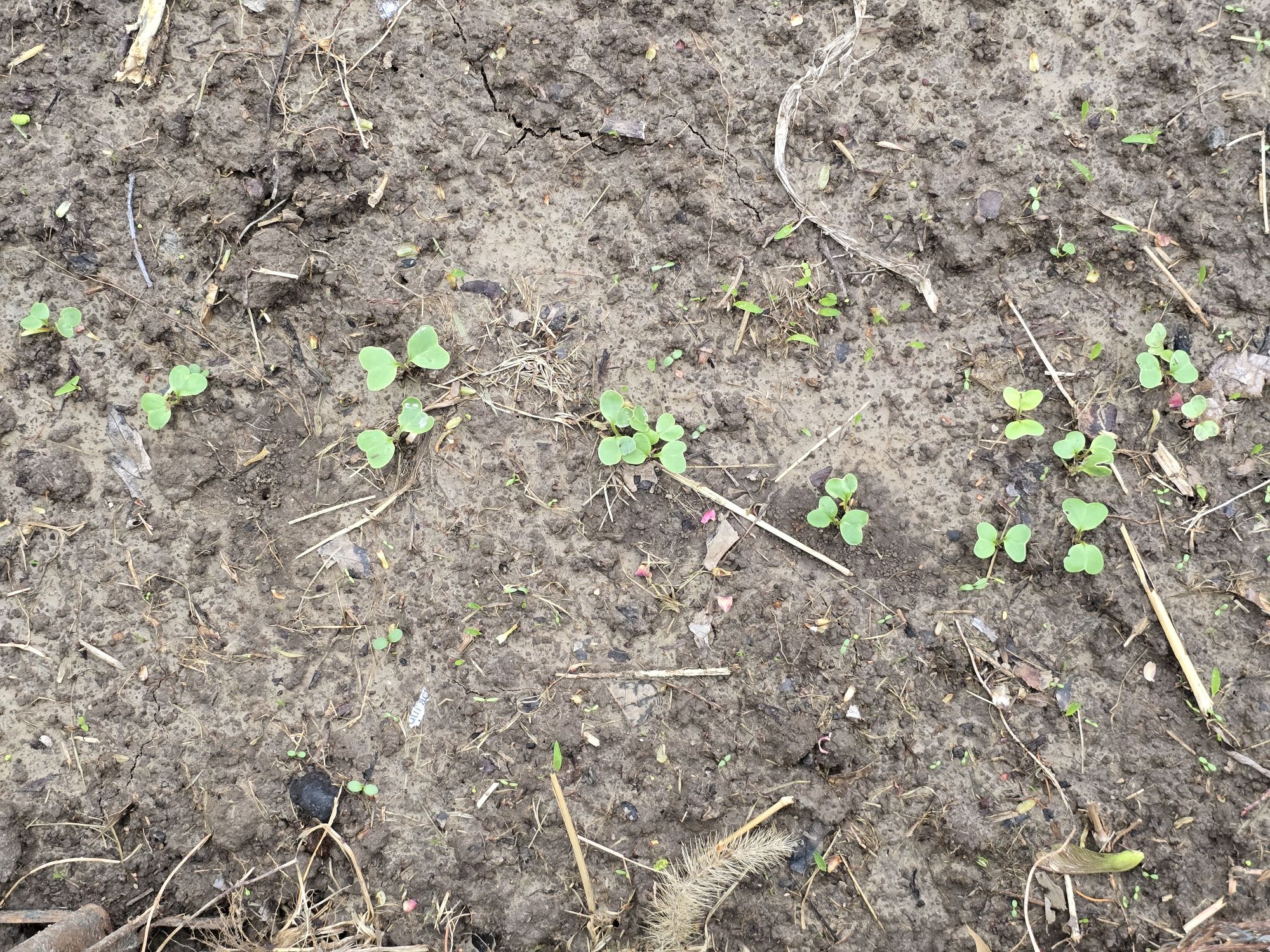 I took measurements and decided on a 90″ x 246″ space for the first cruciferous vegetables. That makes four rows spaced 22.5 inches apart with 13 plants per row. Next steps here are to fertilize and till the soil, lay down plastic ground cover and get the seedlings in the ground. There are not enough kale and collard plants to fill all the spots, so I may make two rows of either broccoli or cauliflower or both. I need to count seedlings. However this turns out, the area will get fenced in before nightfall on planting day.