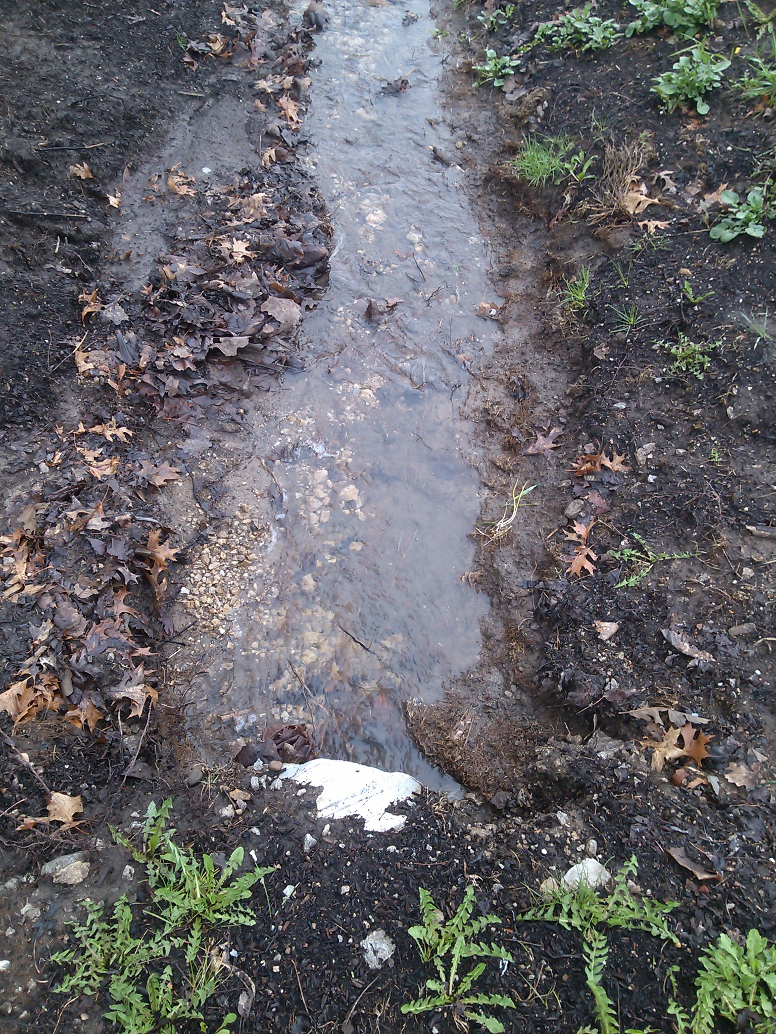 I failed to notice the dandelion greens while shooting the photo of the culvert at the end of our driveway. They are at a stage ready for salads and cooking. The wreck that was the contractor ditch work last fall yielded something positive, at least in a culinary way. When the rain abates, I’ll repair the ditch damage, but today will be harvesting the greens. There is a yellow squash from the grocery store in the kitchen, so maybe a side dish of squash sauteed in olive oil, with onions and dandelion greens. Mmm.