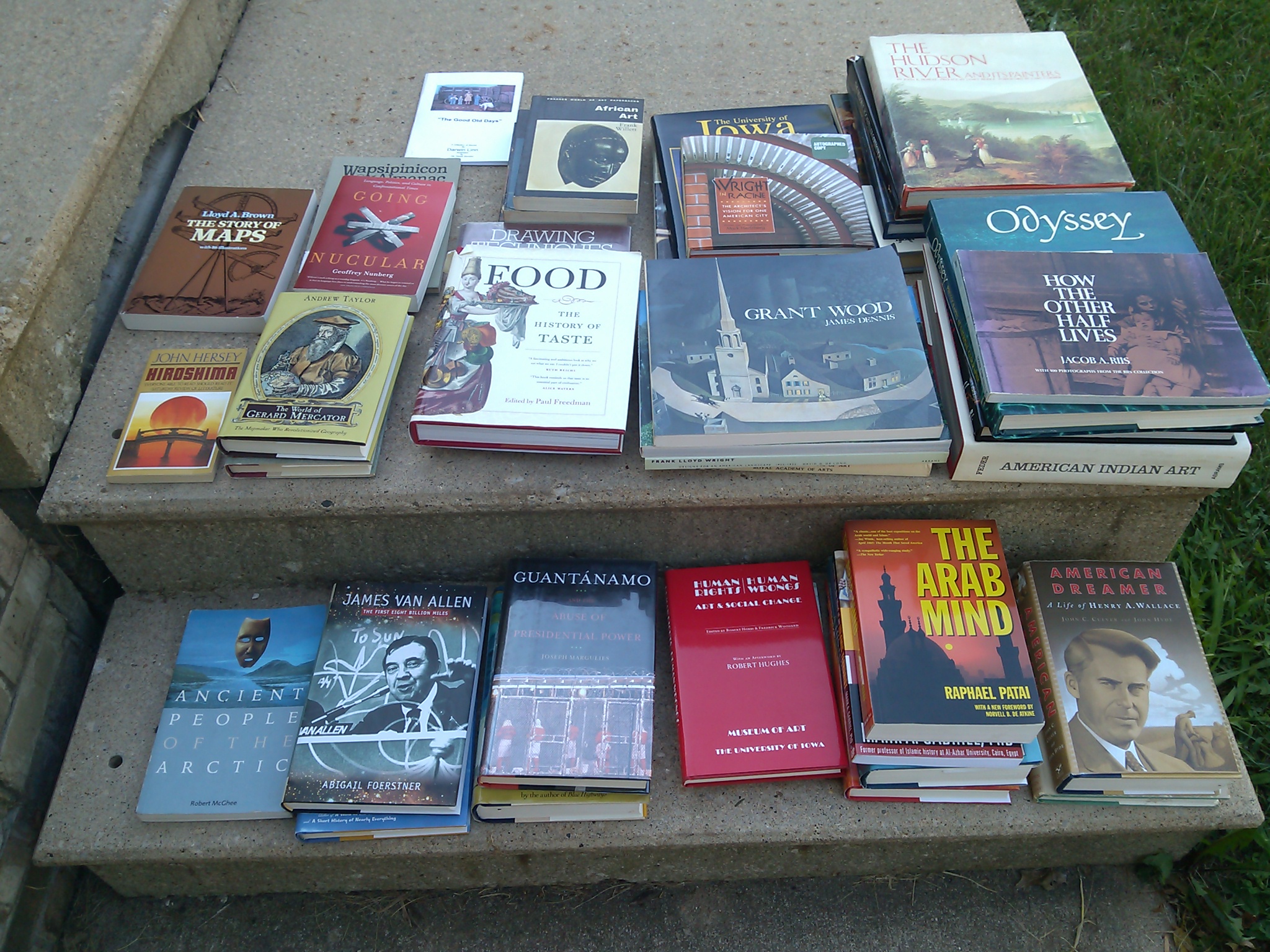 Comme d’habitude, I was an early bird for the sale, and had browsed through the much larger than usual cookbook selection. Not much of interest for me, as I have been collecting social group fundraising cookbooks for years, and have about all a person could wish for. Cookbooks from my home town, from my new home, from the hospital where I was born, and the one where our daughter was born, from the church where I was baptized, from area businesses, from the Stone Academy (a local one room school house), from the American Trucking Association, from where I worked, and a host of specialty and celebrity chef cookbooks. Adding more of the same seems so 20th century.