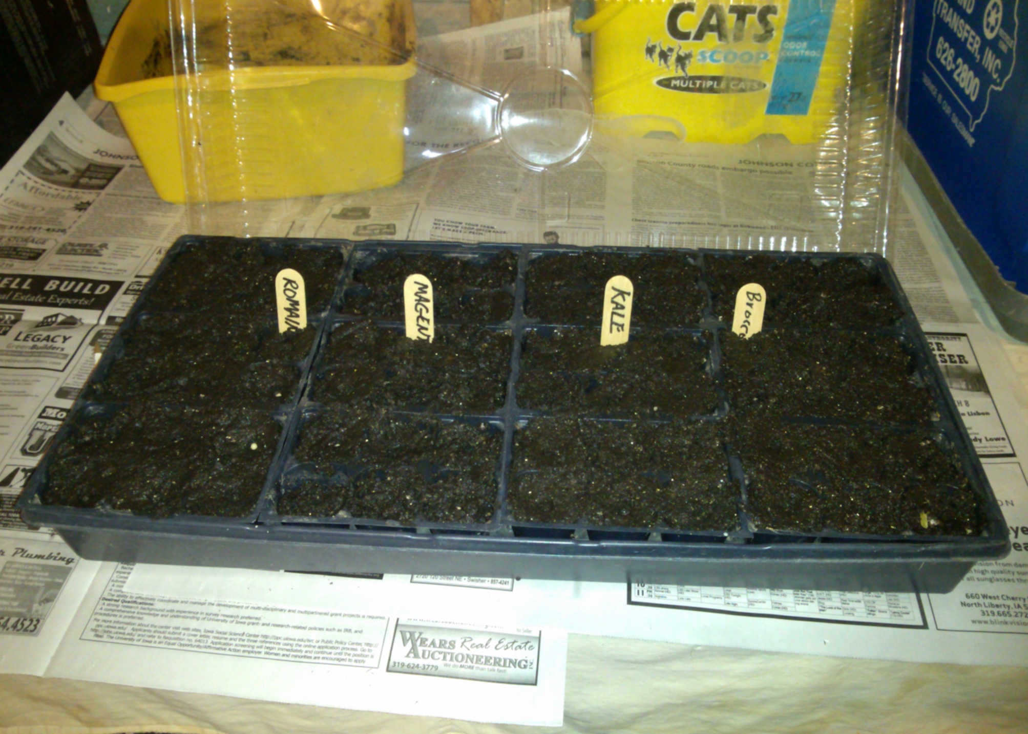 The afternoon was laundering my warehouse work clothes, and working in the garage. I put soil in seed trays and planted sweet pepper seeds: King Arthur, Lunchbox Orange, and Lipstick. I filled out the tray with a packet of last year’s green bell pepper seeds. Tomorrow will be hot peppers: Serrano del Sol, Conchos Jalapeño and Bangkok hots. Then I will be out of trays.