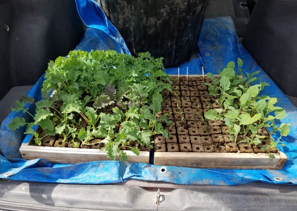I measured the remaining space in that plot and determined 36 kale plants would fit. That’s the same number I planted last year, although I hope for a better yield this year. The kale plot will be 6 Vates, 6 Starbor, 12 Scarlet and 12 Darkibor. I grew way more than I’ll need and leftovers will be given away to friends and neighbors.