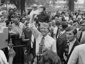 1976 was the first election in which new Democratic National Committee rules were in effect to change the presidential nominating process. Iowa went first, Carter realized it, and he showed up with an aid at the Iowa State Fair that August to campaign.