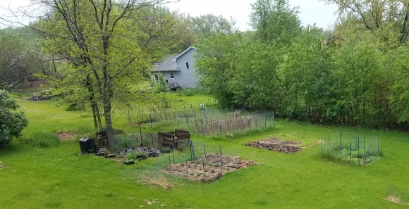 Garden ground continues to be too wet for tillage, the next task on my spring to-do list. I went through the lettuce seedlings in the garage, transplanting the best ones into larger containers, and turning the rest into dinner salad. I got my hands dirty with soil, just barely. This wet spring is getting old.