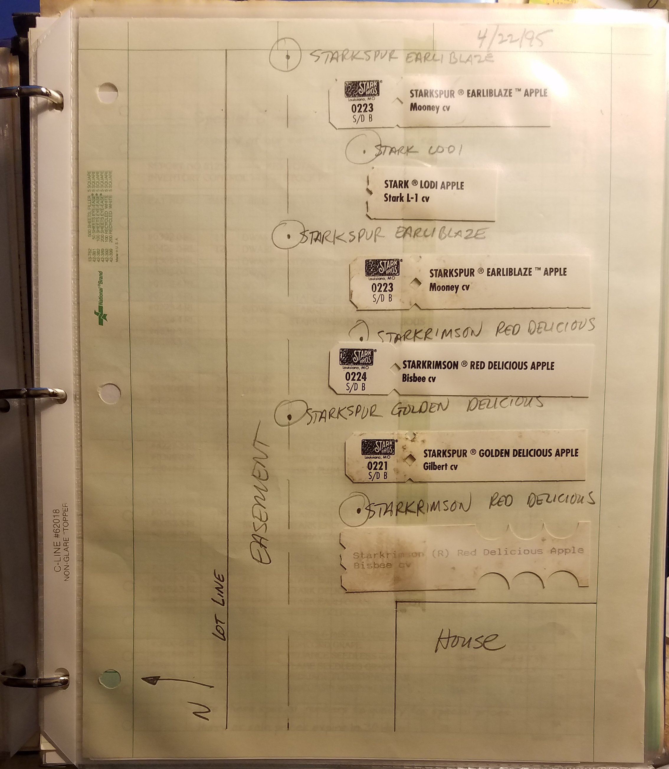 Among recent findings was the planting record for our grove of fruit trees. Planted on April 22, 1995, I began with six varieties of trees, which over the years has been reduced to three: one Red Delicious and two Earliblaze apple trees.