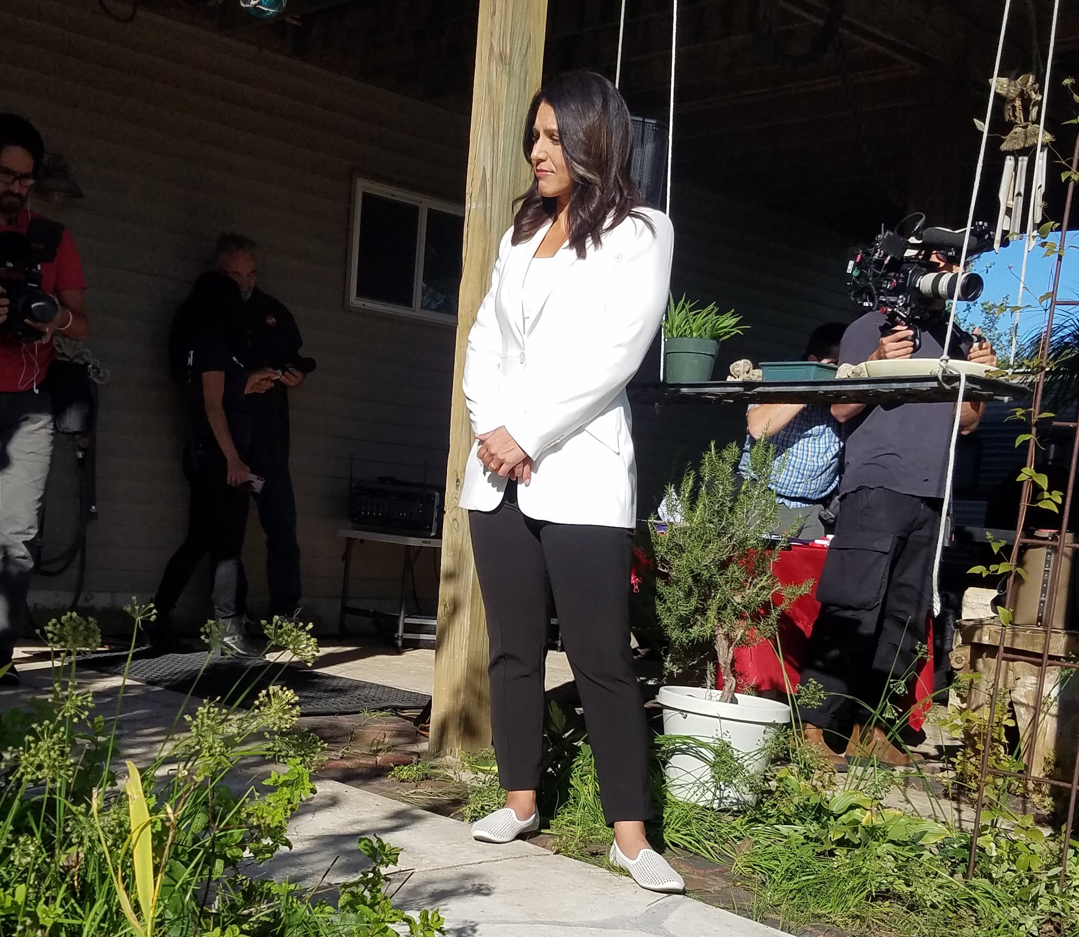 BIG GROVE TOWNSHIP — On Tuesday a neighbor hosted presidential candidate Tulsi Gabbard at his home.