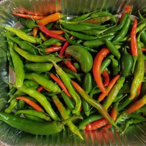 The day began in the kitchen. Using onions and Swiss chard from the farm I made frittata for breakfast. Next, I sliced apples and filled the dehydrator. Sunday is the county party’s fall barbecue so I tested a recipe for applesauce cake to see if it would fit in the foil pans I bought for potlucks. The recipe fit without modification. In between this cookery I managed to glean the garden, bringing in peppers and tomatoes that would be damaged by frost. The kale looks really good right now and a freeze would make it taste better.