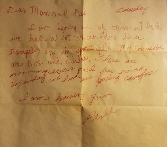 Artifacts like the camp letter pictured above lead me down a path of memory I had forgotten. It’s about canoeing on the Mississippi River, about campfires, and summer free swims, and having fun away from home and telling my parents all about it in a letter. Now that they are both gone the memories are welcome.