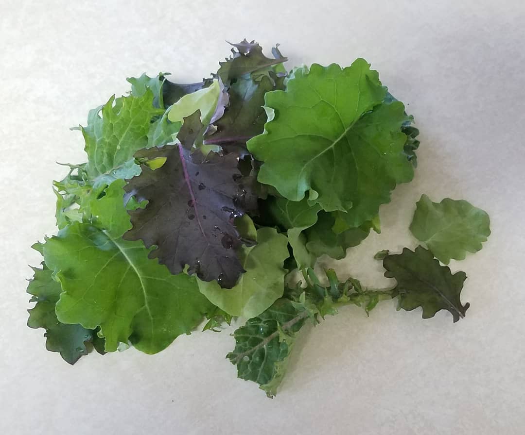 Red Russian kale over-wintered so we had fresh kale for our stir fry dinner Sunday night. I mixed it with some Winterbor and Redbor leaves collected while re-potting plants for final growth in the greenhouse.