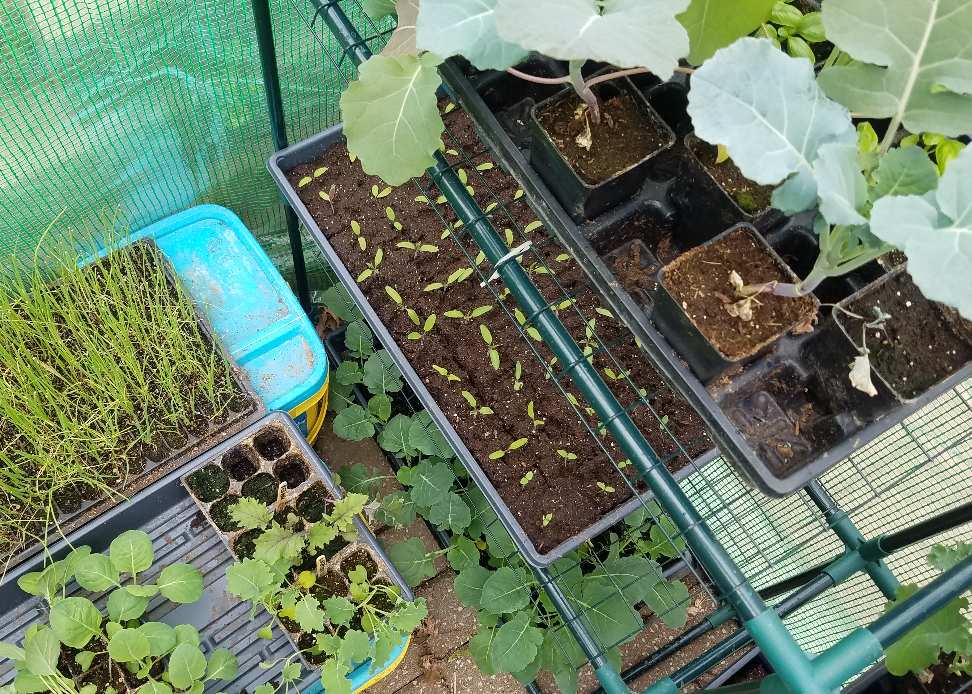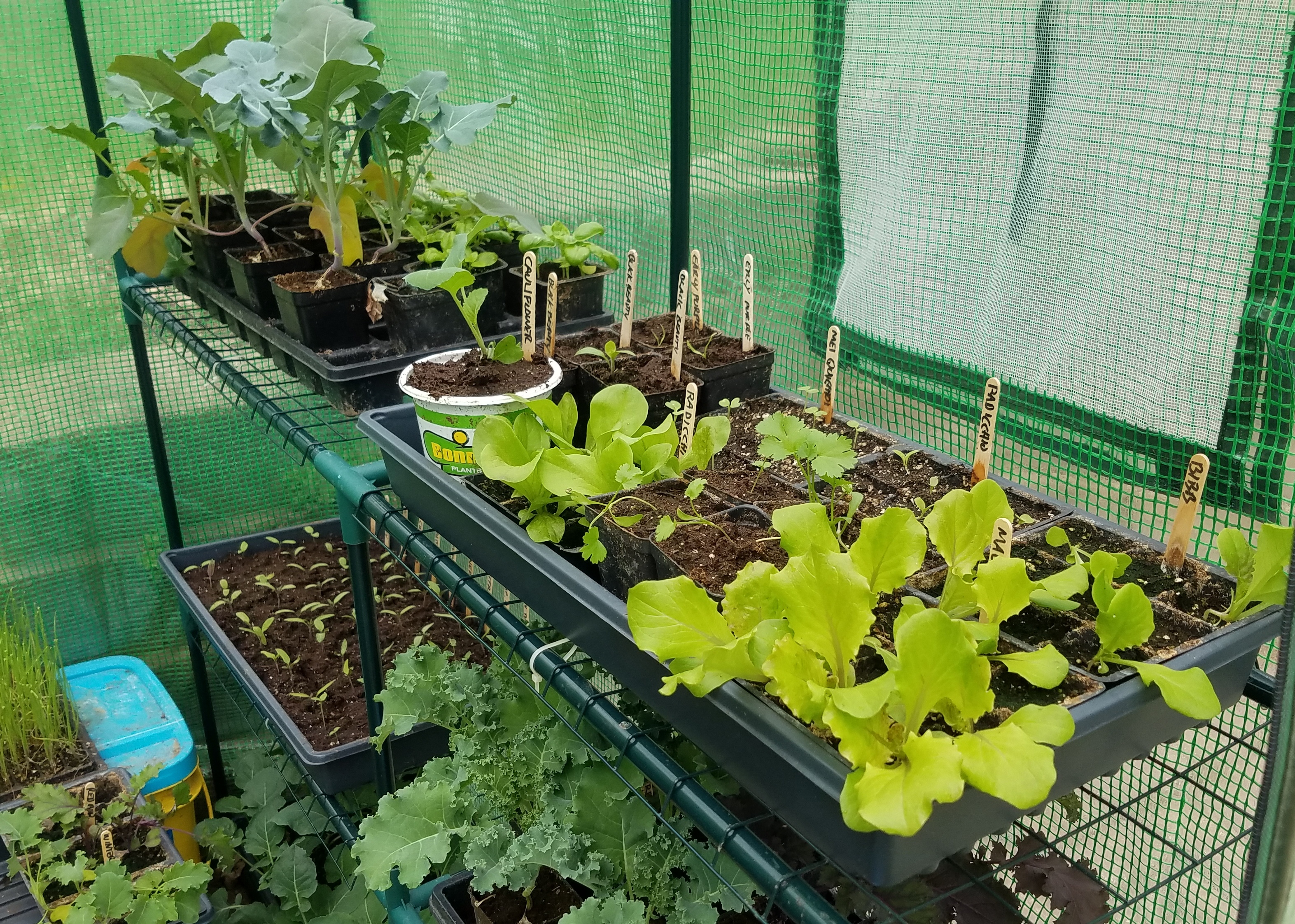 It’s a day for planting, so today’s post shows the greenhouse is full. Everything in it was grown from seeds. Time to get the cold weather plants into the ground.