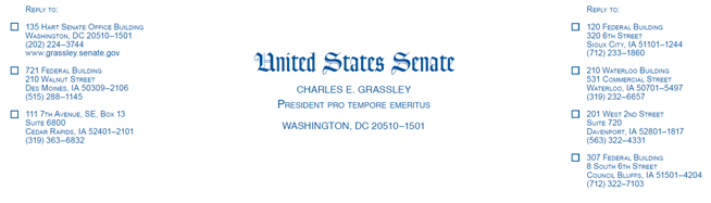 Below are the Iowa senators’ unedited responses to my query. Grassley’s is first because he is our senior senator. Ernst replied first. I’m glad to hear from our elected representatives.