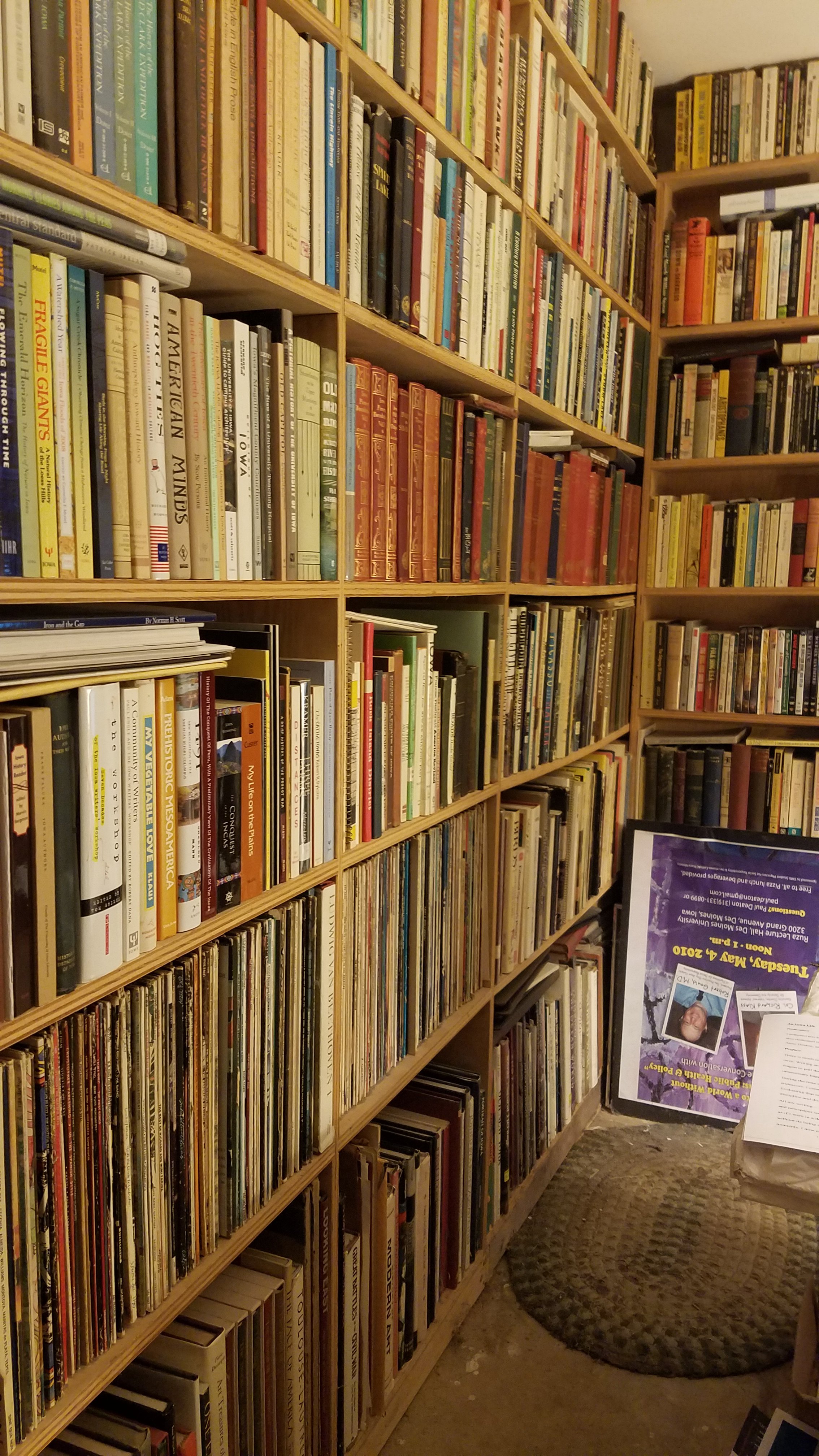 Mainly I want quick access to books and papers I need for my writing. Egads! I’m not there and time’s a wasting! Archival materials would describe this if I had taken time to archive everything, which I have not. I’d like to get the collection to a manageable size, one that would fit in a single room. Once I get there I may call it a home library and be justified in doing so. For the time being, it is what it is and the word “library” is not an accurate fit.