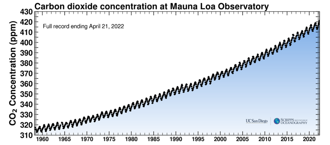 As data from the Mauna Loa Observatory in Hawaii indicates, carbon dioxide concentrations in the atmosphere continue to increase. The latest reading was yesterday at 420.25 ppm. We may not have understood the significance of such a small part of Earth’s atmosphere on the first Earth Day, but we do now and the numbers continue to roll upward at what can be described as a steady pace. It is as if the environmental movement accomplished nothing.