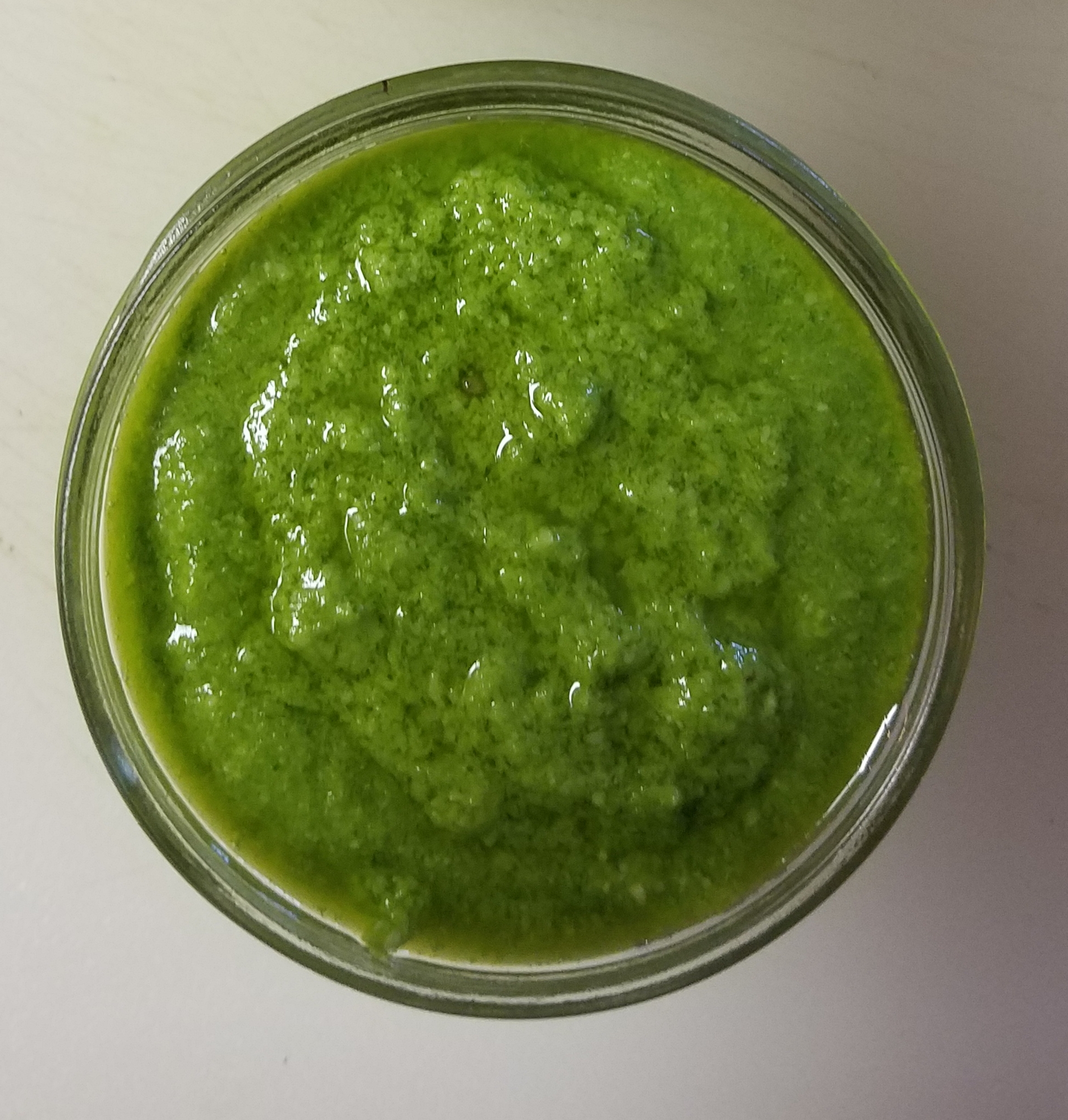That brings me to mustard greens. I plant them because there are seeds left from previous seasons. There is not much use for them in our kitchen because it is so spicy. One of my recent traditions is to make pesto with them to spread on toast. This year’s batch included a generous amount of mustard greens, Pecorino Romano cheese, pine nuts, garlic scapes, salt and extra virgin olive oil. There are now two small jars ready for use. It is a tasty if somewhat expensive addition to the pantry.