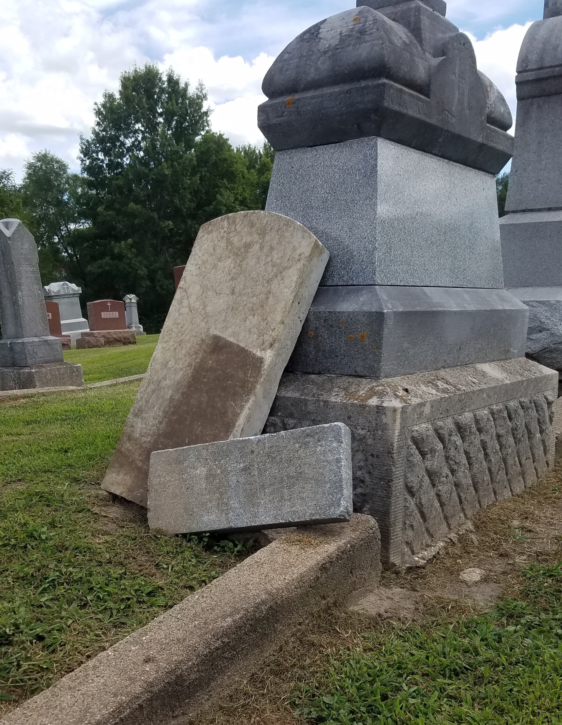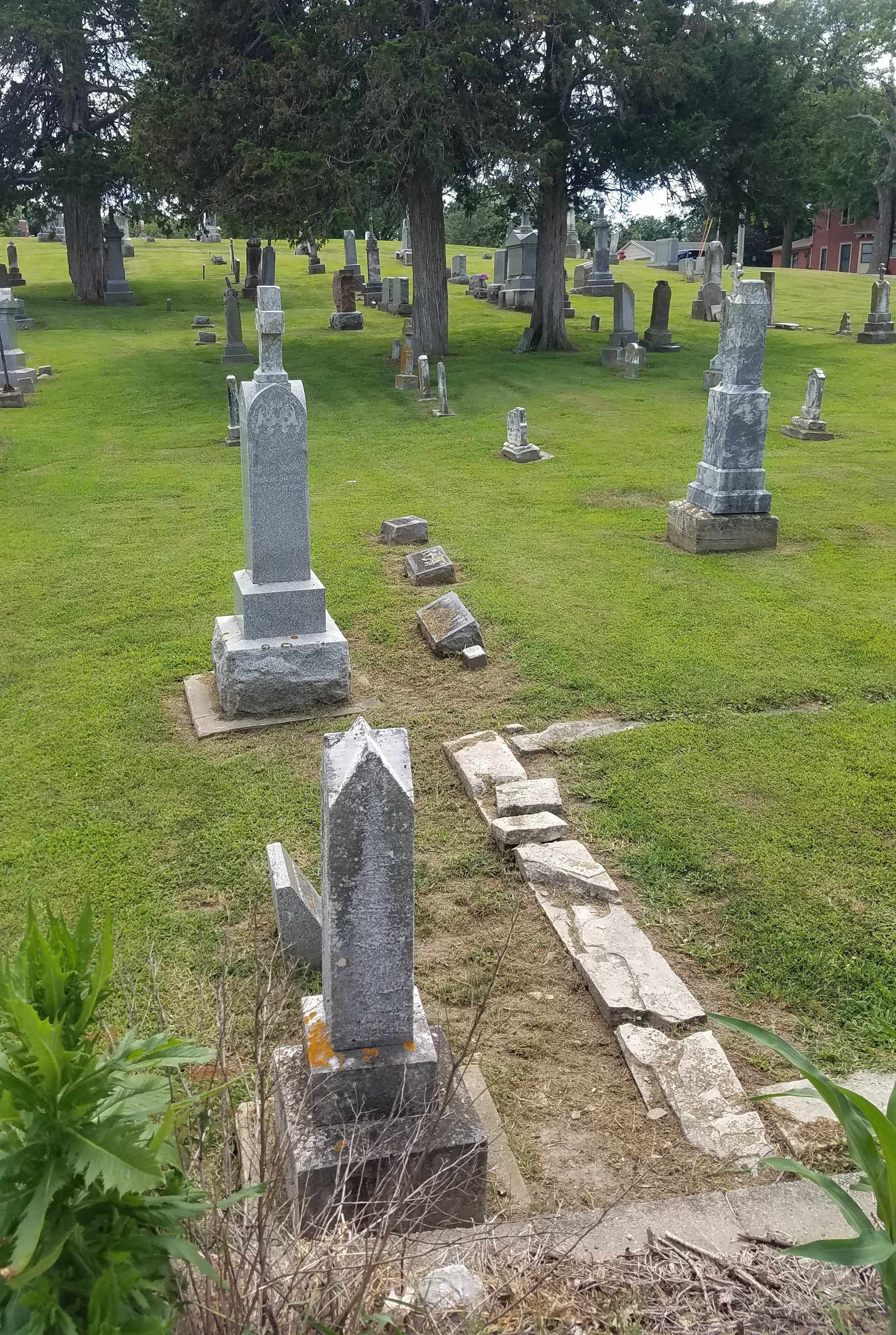 The cemetery has a look of not being maintained. The closer the view, the more markers are found damaged and askew.