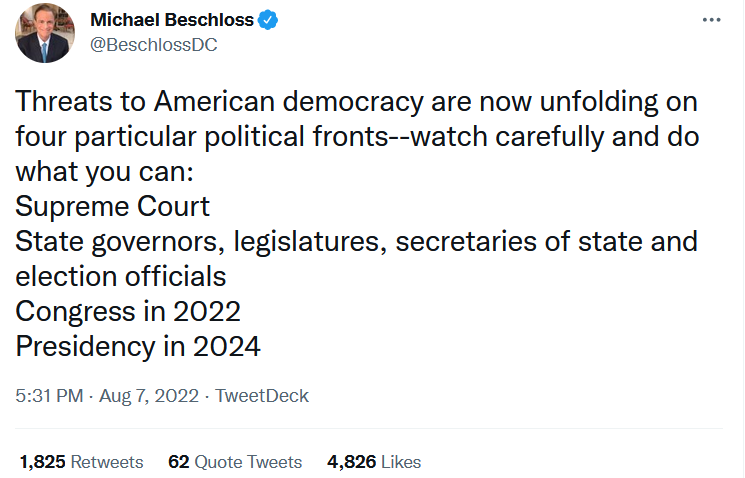Historian Michael Beschloss posted the following on Twitter Aug. 7: