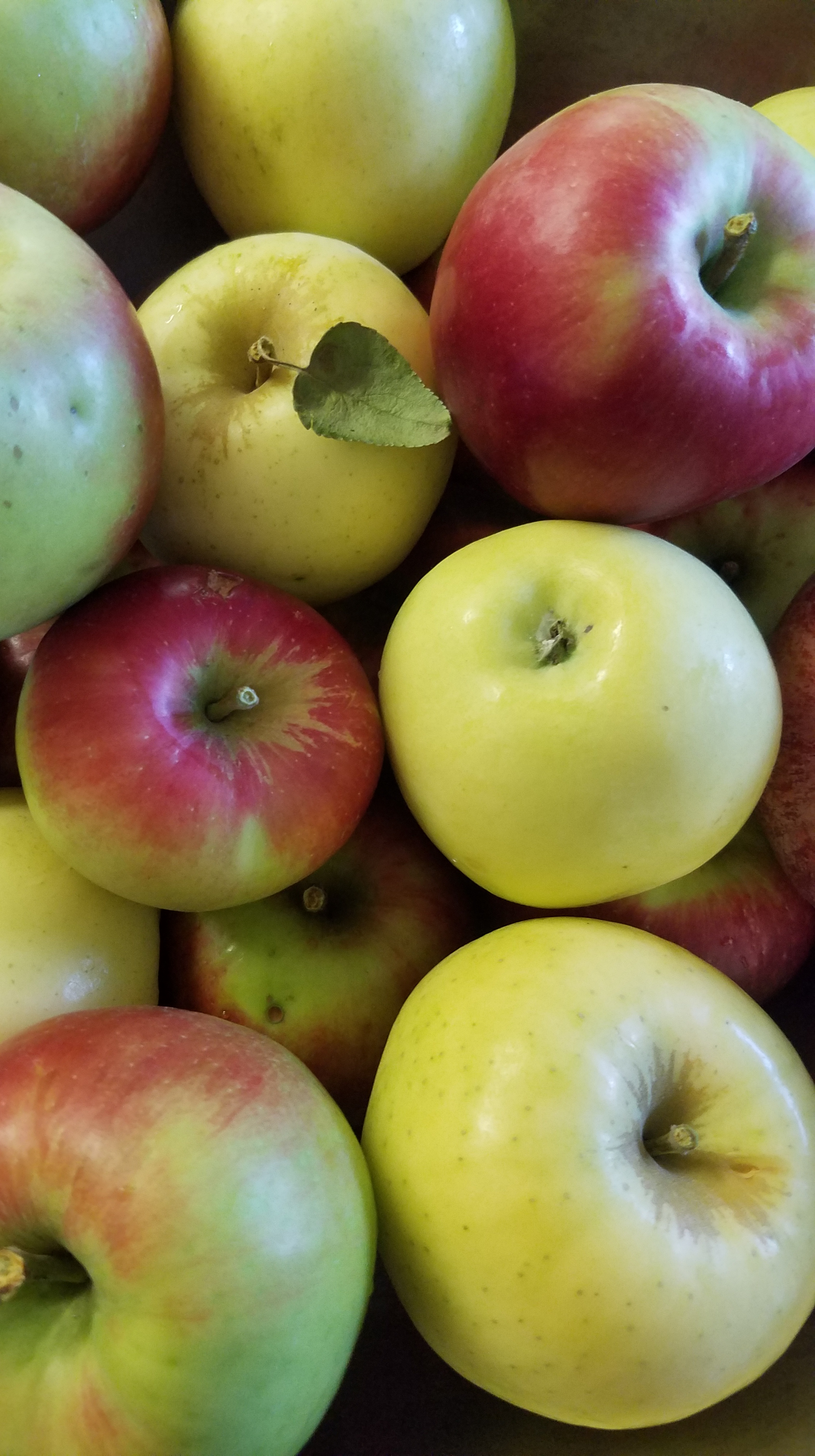 I drove to Wilson’s Orchard and picked Ginger Gold, Burgundy, Sansa, and Red Gravenstein apples. Trees were loaded with fruit and no one else was picking. It was like paradise without the serpent.
