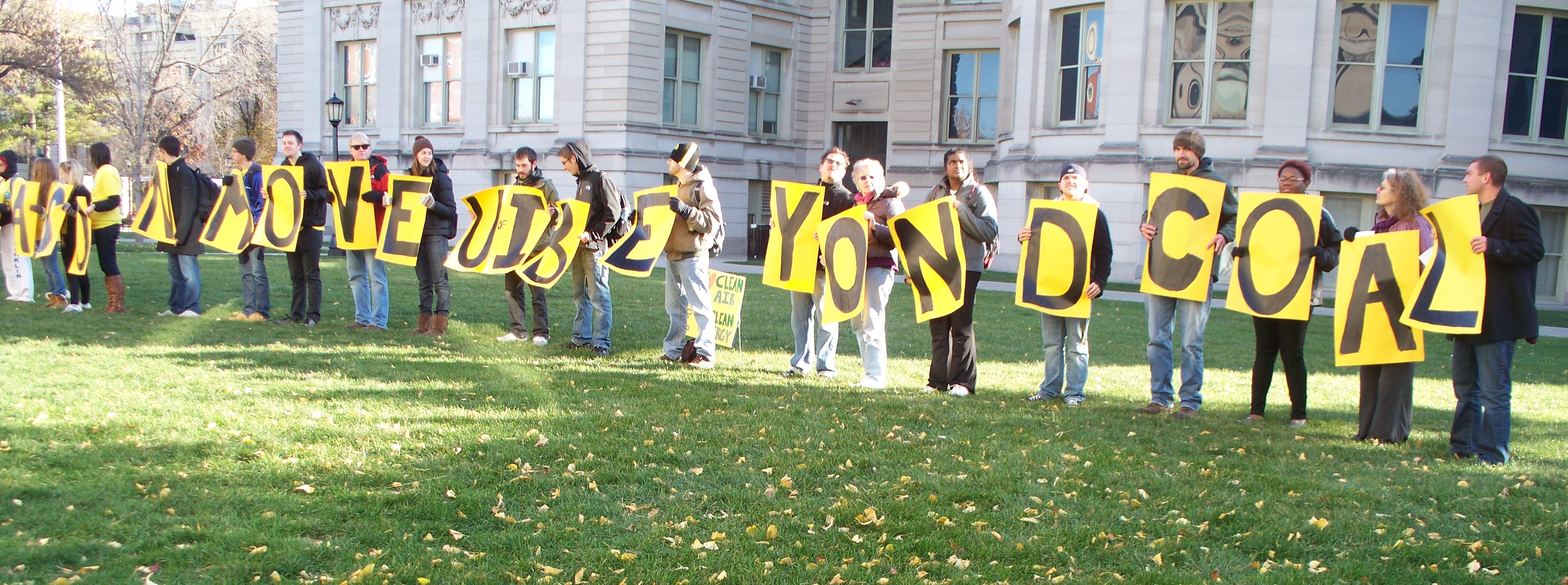 In November 2011, there was a demonstration at Jessup Hall on the University of Iowa Pentacrest urging then president Sally Mason to cease operation of the coal-fired power plant. We delivered a petition to her office. There were speeches on the steps of Jessup Hall. I gave a speech, among others.