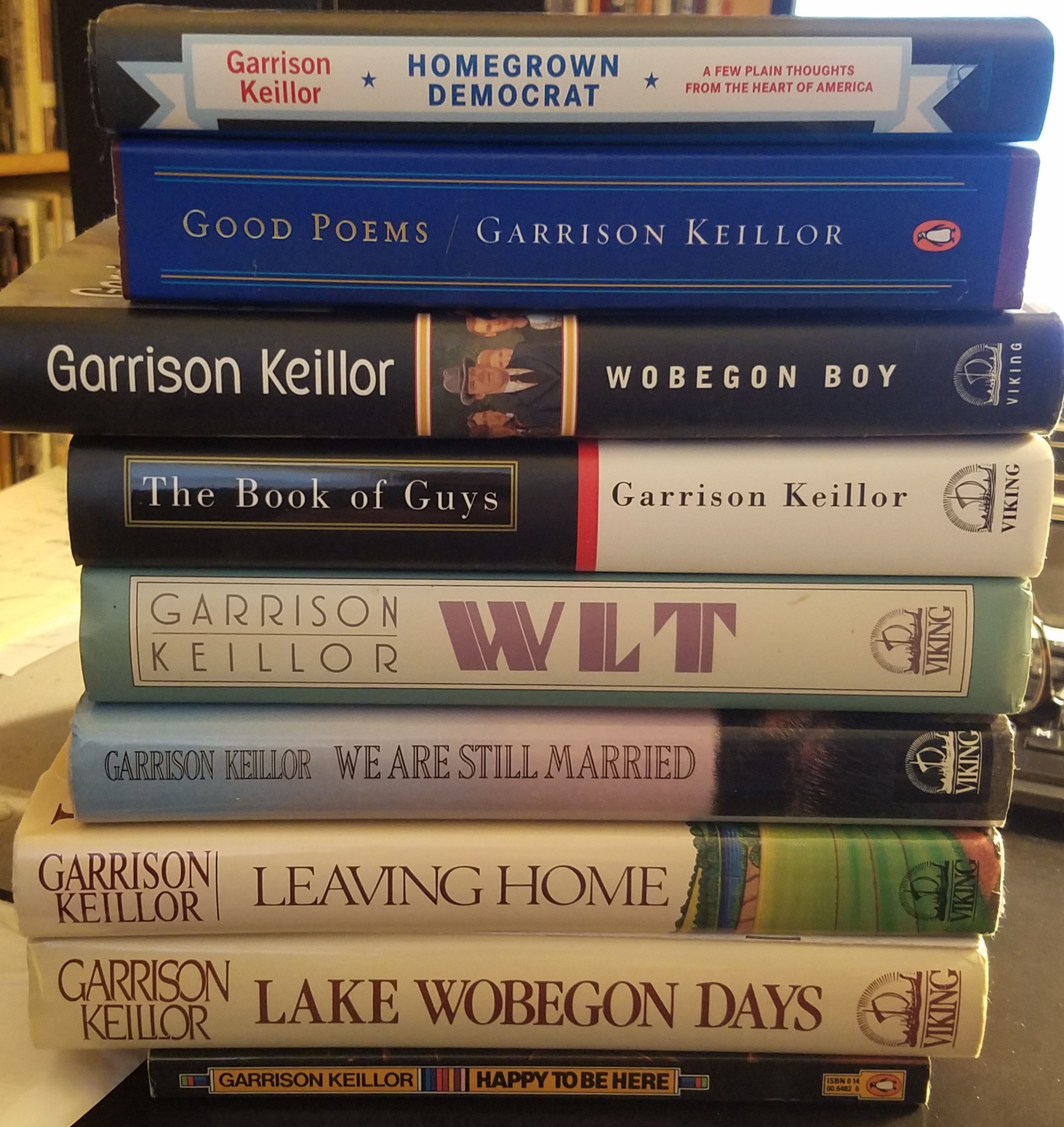 Keillor’s allure was when A Prairie Home Companion was live on Saturday night, the signal coming through the clock radio atop the Kenmore refrigerator in our Midwestern home. I did things in the kitchen and listened. In important ways, his show made Saturday nights for a long time. I miss them. Will I miss the stack of books? If I would miss them, I might have picked one of them up over the last ten years.