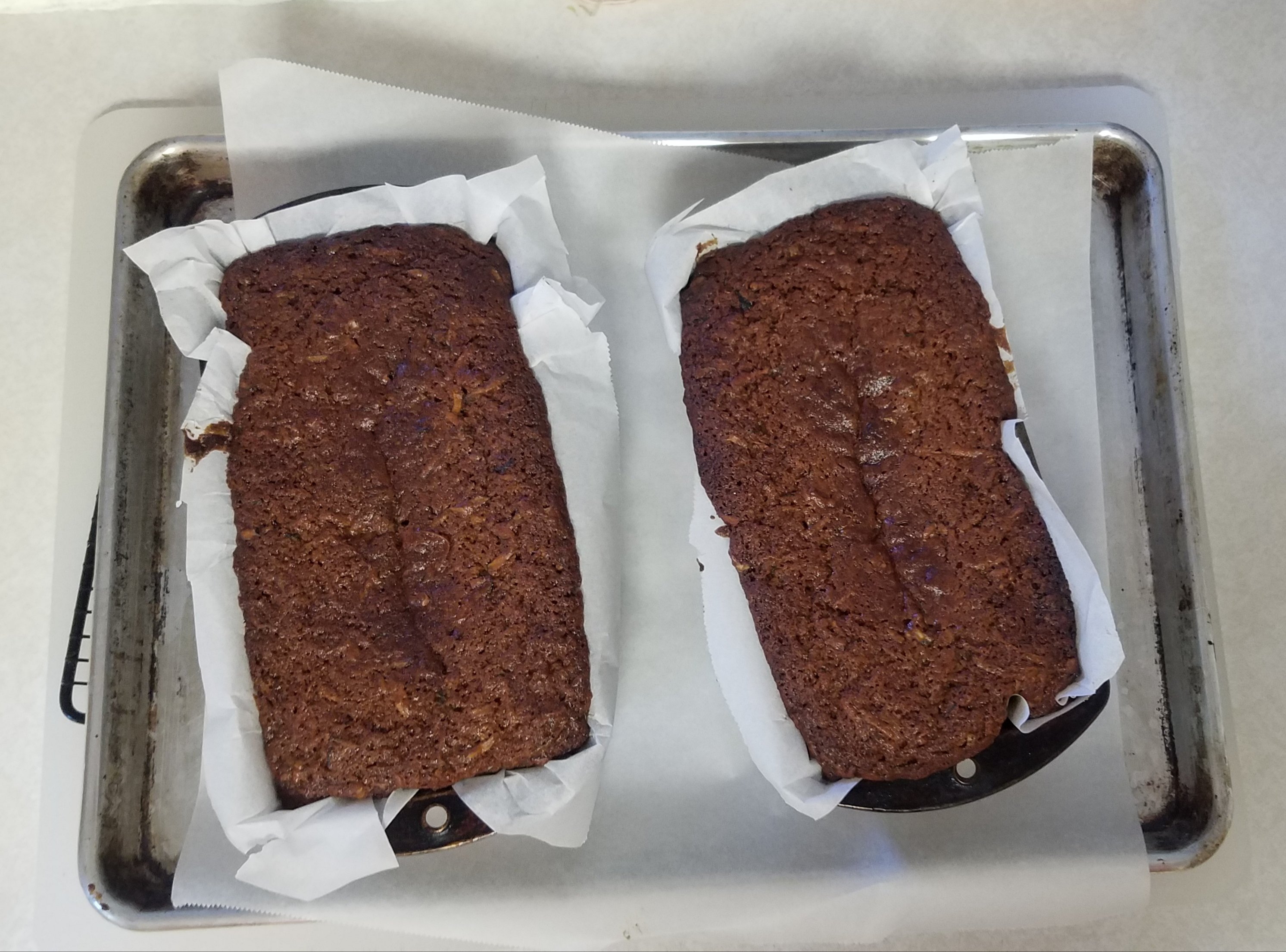 The garden is producing zucchini, so much there is pressure to do something with it. Zucchini bread is a traditional way to use the excess… some of it, anyway.