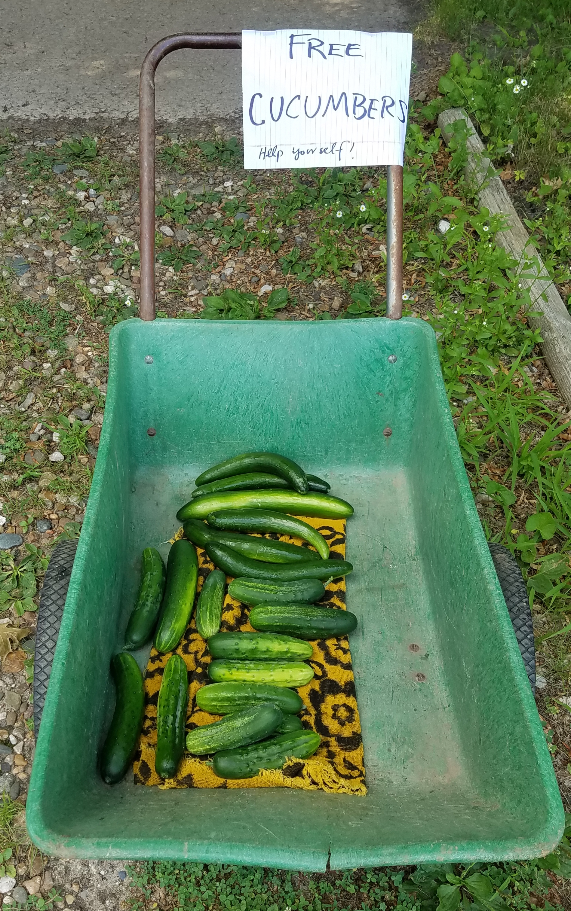 We are at the point of summer where if I see you in person, I’m likely to give you a cucumber. Two if you’ll take them. Last night at a meeting of mostly grey-haired friends, the box of cucumbers was empty when I left. Those who took one seemed to want and like the vegetable.