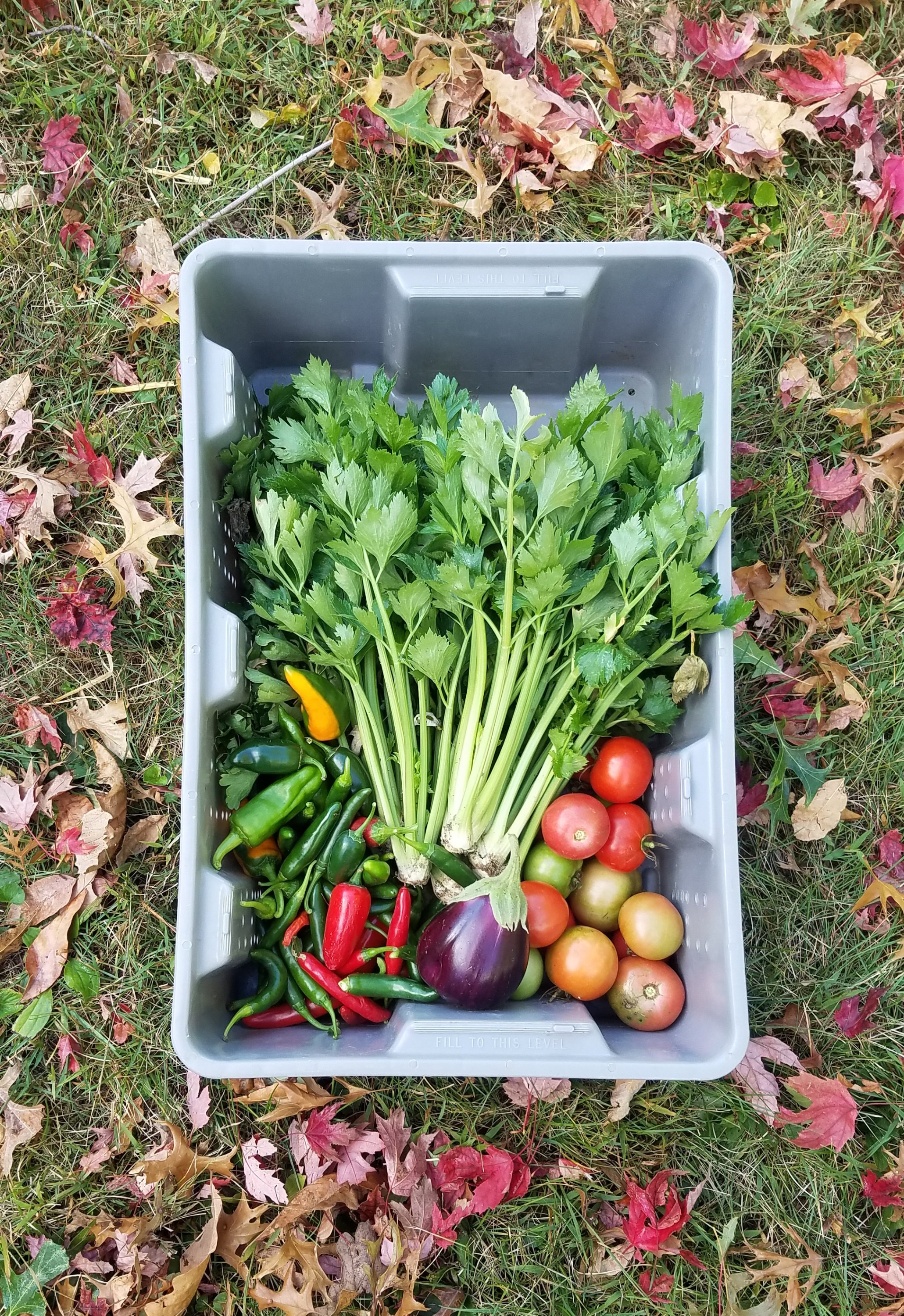 I was up late last night processing the gleaning. There is almost always something growing in the garden, so there is never any final gleaning. All the same, the first hard frost is a big deal. There was celery to dice and freeze for soup, Redbor kale to freeze, tomatoes to clean and process into juice and tomato sauce, hot peppers to make into chili sauce, and the counter is lined with the last green tomatoes for ripening. We’re almost at the end of the season.