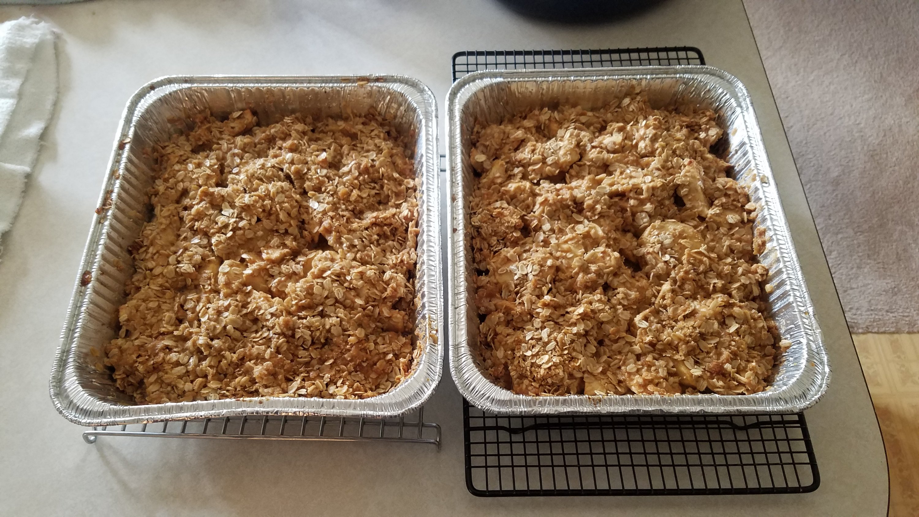 I used some of my share of apples to make 32 servings of apple crisp for the county party fund raiser this afternoon. They came out looking good. I’ll deliver them to the fairground in a couple of hours.