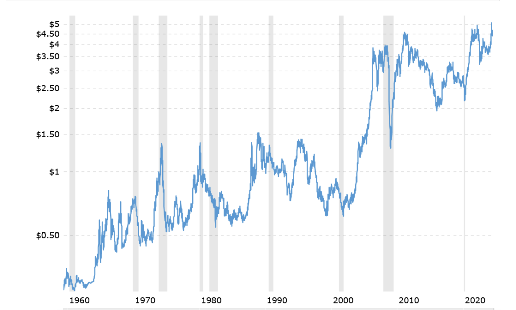 What makes this different is most of the attention from the wealthy, libertarian puppet masters of the Republican Party is directed toward oil and gas exploration and development. Only recently has the value of copper has gone up as this 45-year pricing chart from Macrotrends shows. Mining interests already have their sights set on copper in the Boundary Waters and its watershed.