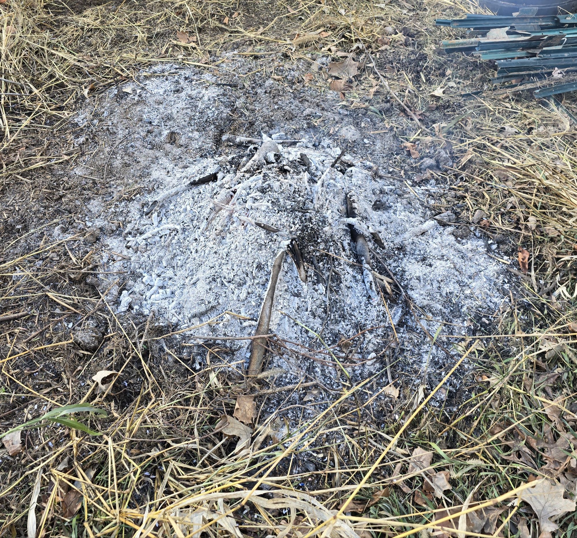 Because it’s been raining, I felt okay about burning brush. I need a place to store fence posts and chicken wire fencing. I burned it today and got the mower out to run over the tall weeds and make room.