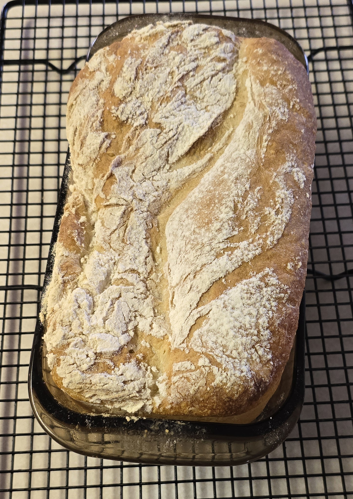 I ran out of bread and didn’t want to leave home to go shopping. I baked a loaf instead. We need more of this as the Republican sh*t storm approaches. We must get along in society, conserve resources, pay down debt, use the automobile less, and eat from our garden and pantry. A bug out bag would not hurt. We must go into survival mode until the dust settles, if it ever does. It will be a while before we can see where we might impact the new society.