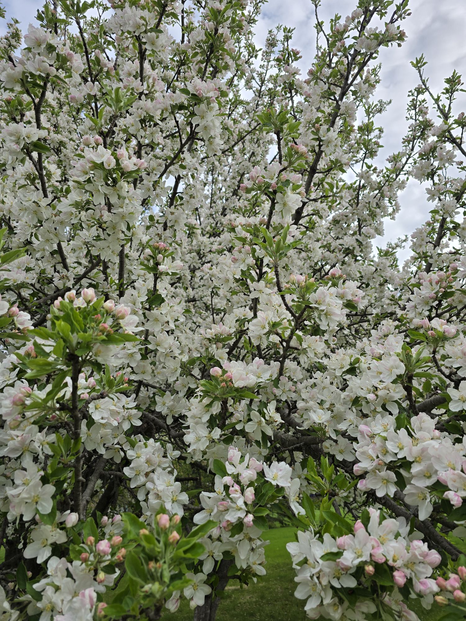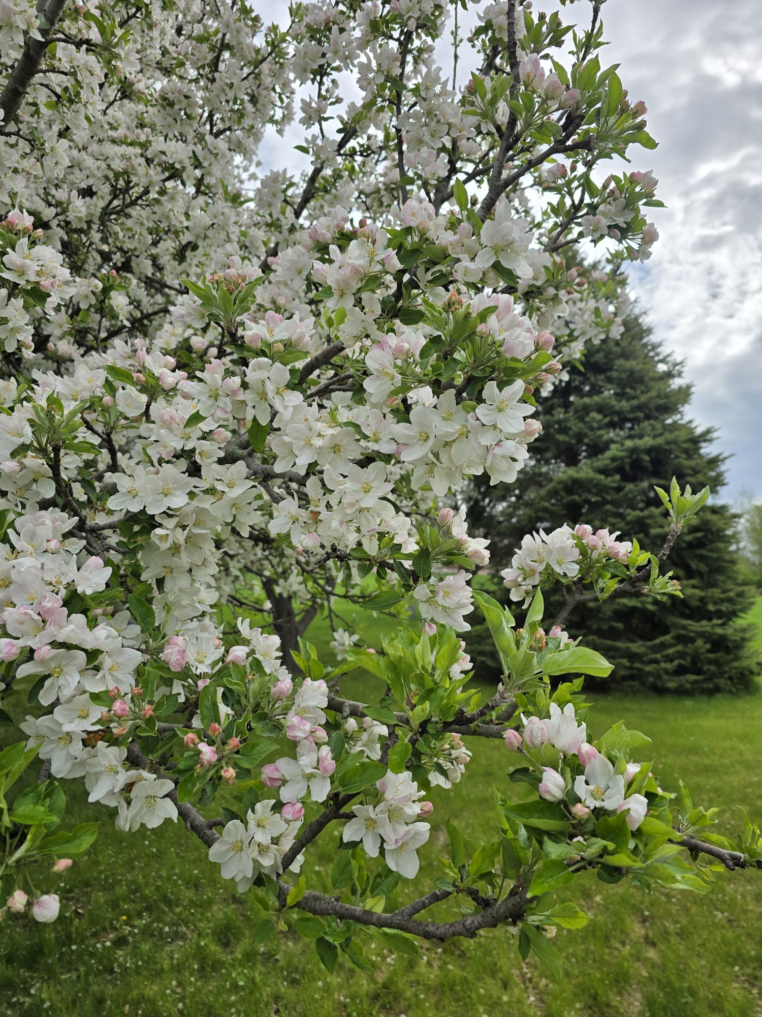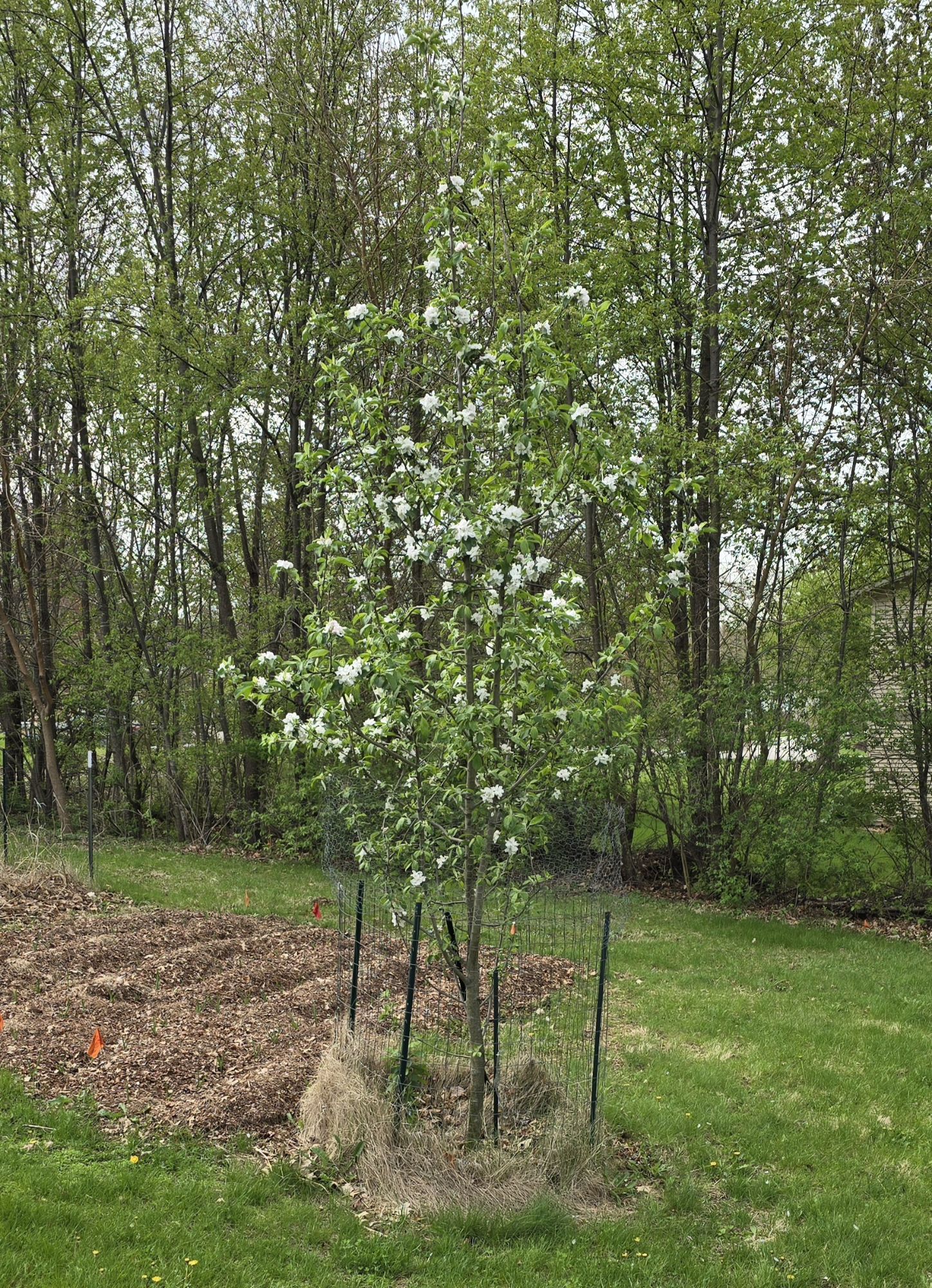 This year should be a good year for apples and pears. Every tree has a lot of blooms, including the two newly planted “replacement” trees. Some days it’s good to just view this fleeting event during which we pray for frost to hold off, pollination to occur, and a bountiful crop.