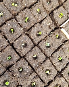 Except for the rosemary, everything planted previously germinated. I now have 720 seedlings in the greenhouse.