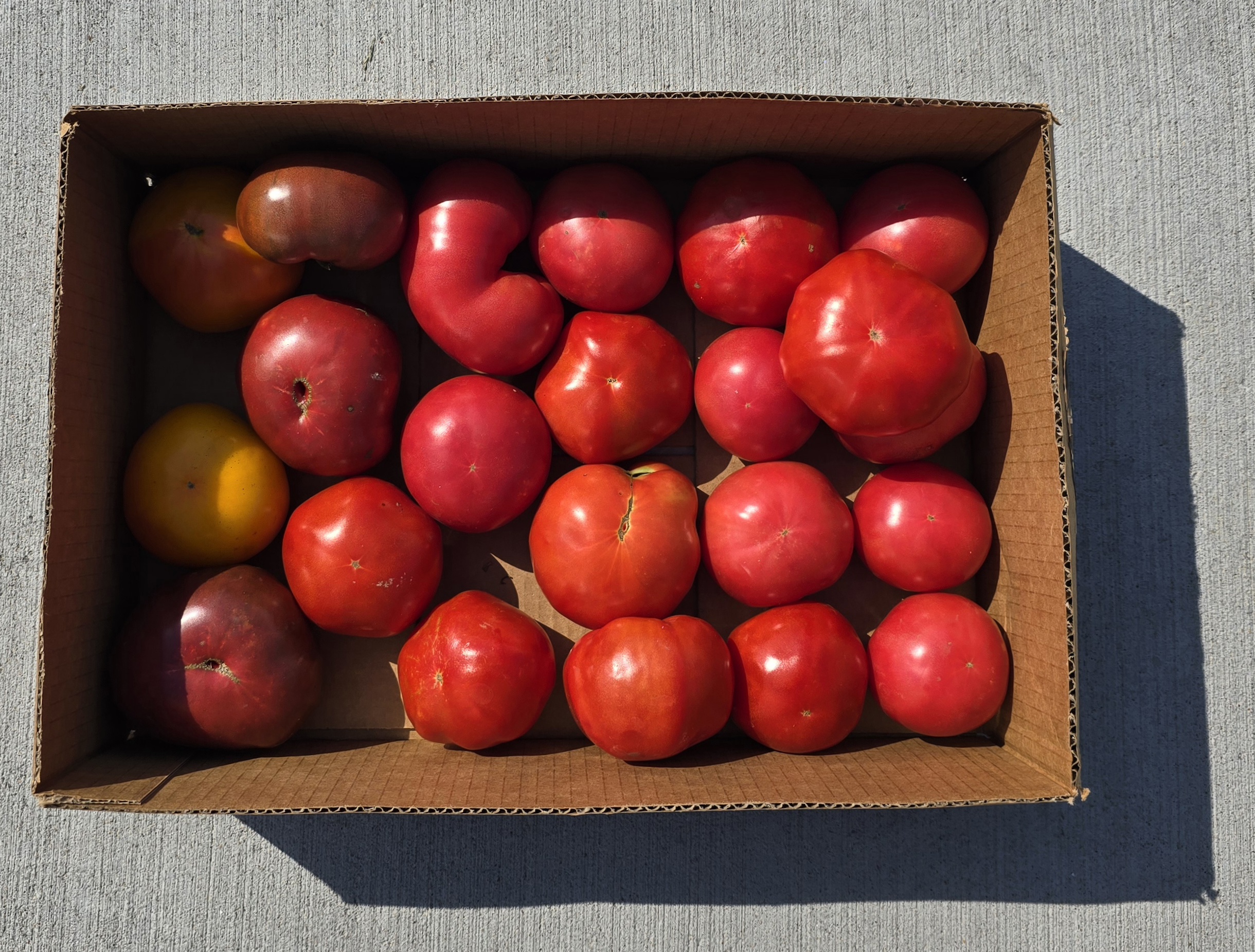 I took a box of cherry tomatoes to the community food pantry. My other Monday errands included filling the auto gas tank and lottery gambling. It was a quick trip, with exposure to people. I like the people part of it, and finishing while it’s relatively cool. Monday errands has become a thing in retirement.