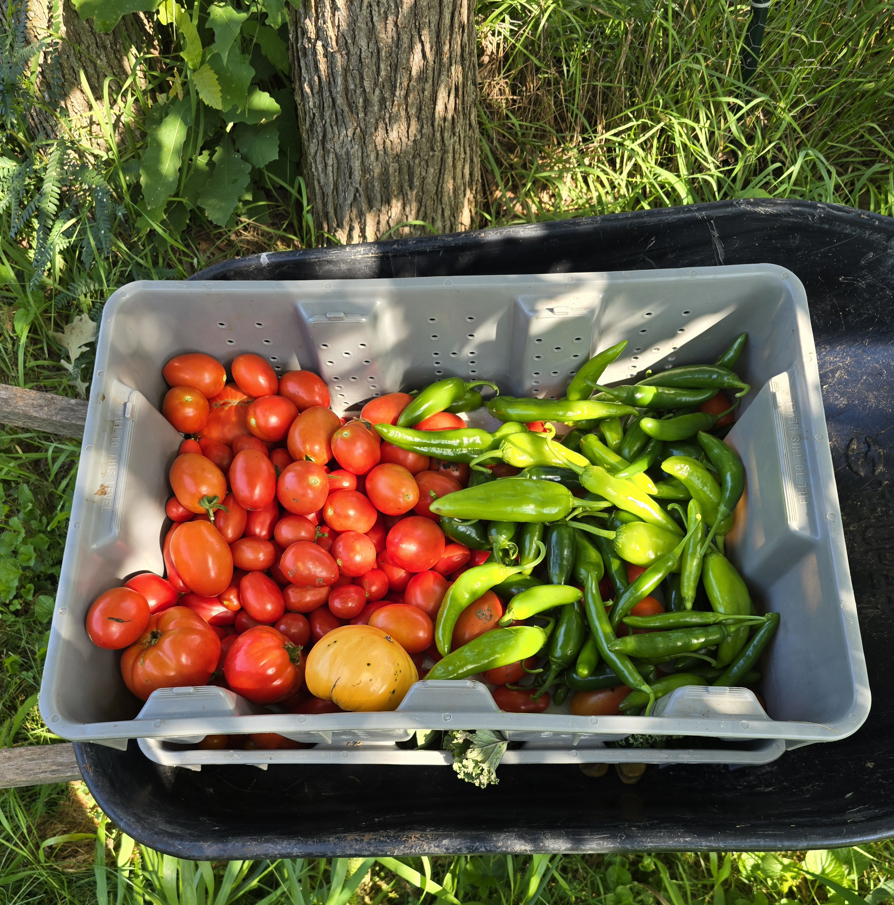 Right now I have three pots going on the stove: two tomatoes and one hot peppers. Learning to process these items took time, but I know where I’m going. I mostly can tomato puree from plum tomatoes. I pickle a couple of quart jars of sliced hot peppers and then make a hot pepper paste to use on tacos. I learned to can only what we need.