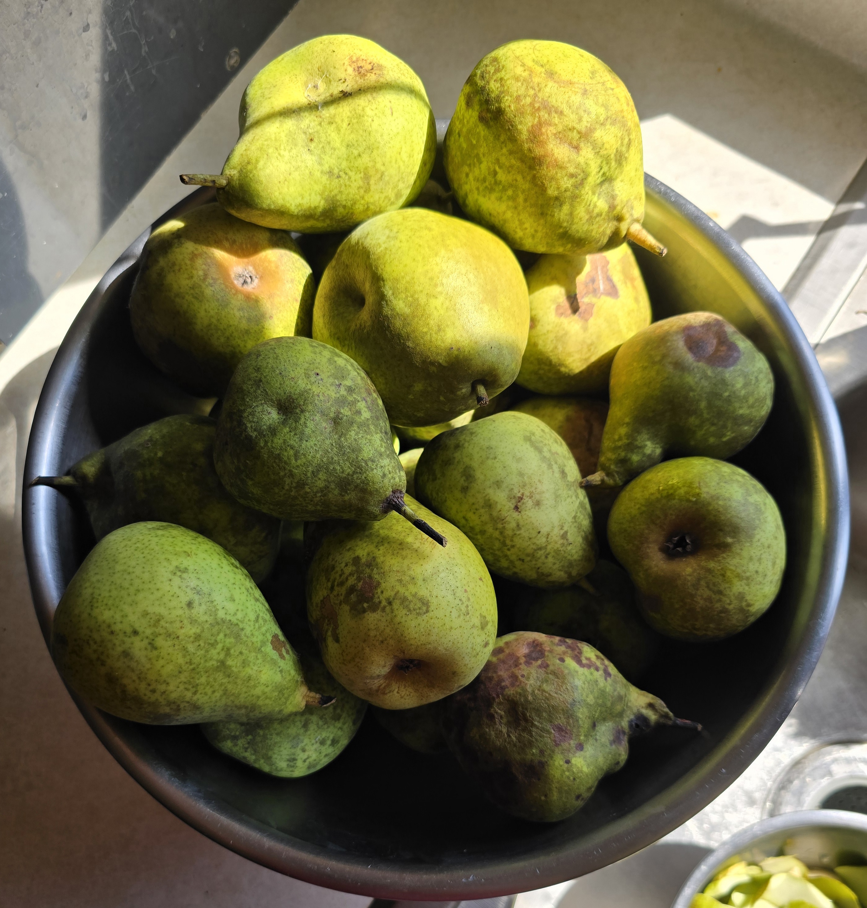 Vegetables and fruit grew as well as they have ever done in my garden. The abundance produced from a small number of seeds and minimal cultivation is astounding. In particular, the green beans, cucumbers, and leafy green vegetables have been of good quality and mostly pest free. All five apple trees produced fruit. So did the pear tree. This year has been a bin buster.