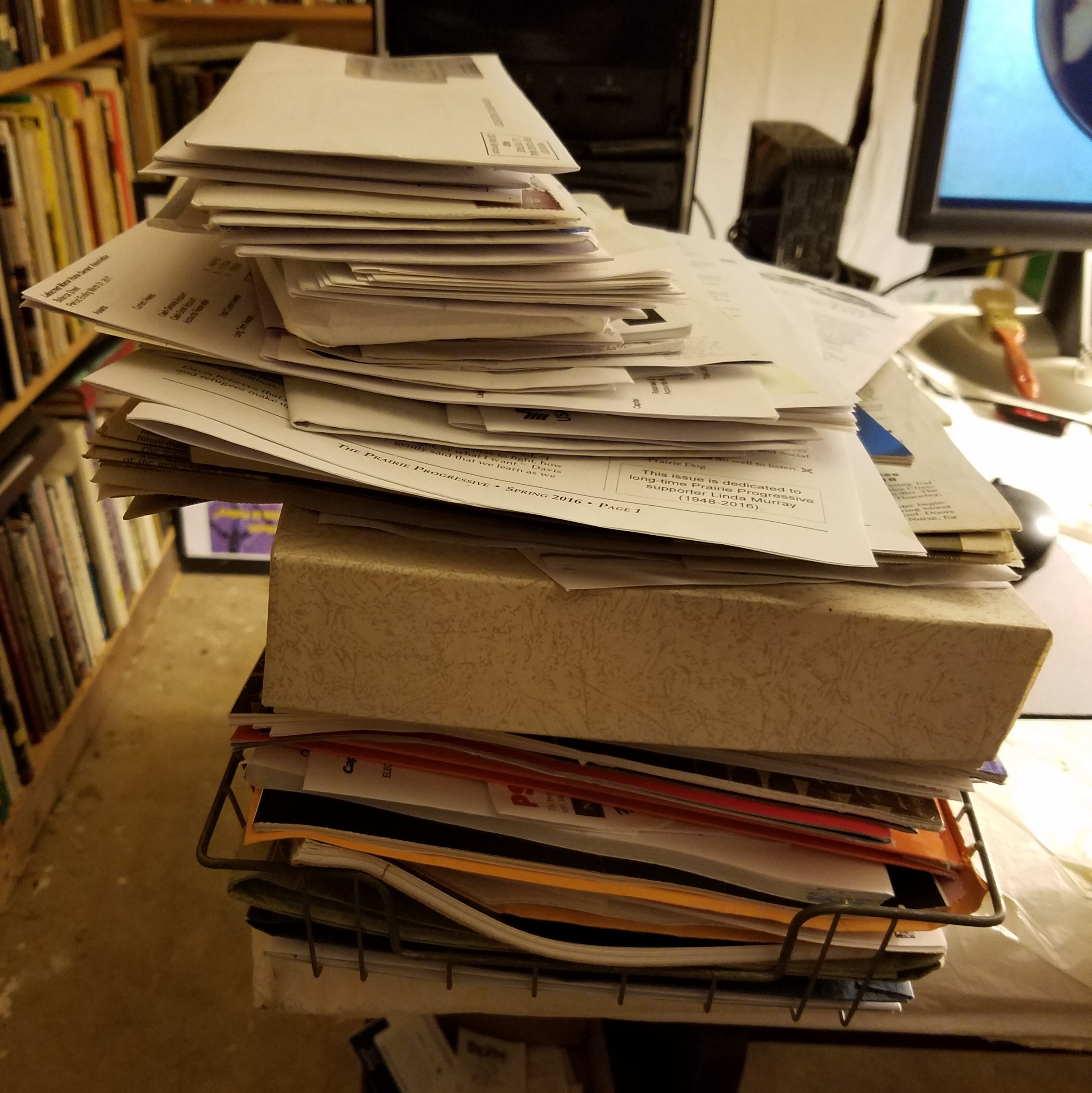I’m reading articles on paper as well. A tall stack of newsletters and magazines rests on the cocktail table next to the couch. I know many of the authors who write for Via Pacis, The Prairie Progressive, Voices for Creative Nonviolence, Veterans for Peace, The Sower, Humanities Iowa, The Iowa Policy Project, and others.