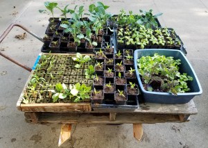 While at the farm I sorted through a stack of pallets used to deliver straw and hay and found two to bring home. I made a wheeled cart for summer crop seedlings finishing before the big May planting. The other will be used to organize the garage until Memorial Day. I’ve requested May 6 – 14 off work at the store to get planting done.
