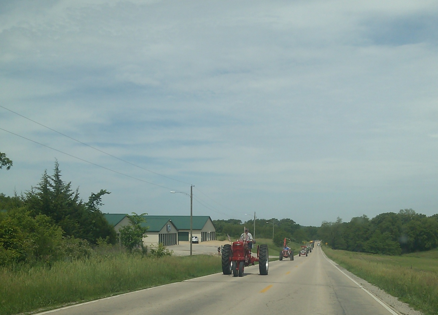 The Great Eastern Iowa Tractorcade is a thing here. Farmers from all over get together in Cedar Rapids and for four days, go on extended excursions in tractors of all kinds. Some of the equipment is older than I am and still working in fields. The caravan extended a long distance, and based on the errand I was running when I passed the tractorcade, it took more than an hour for them all to pass the lane to our home. It is a chance for families to do something fun to show off their farm pride. Children of farm parents take time off city jobs to participate.