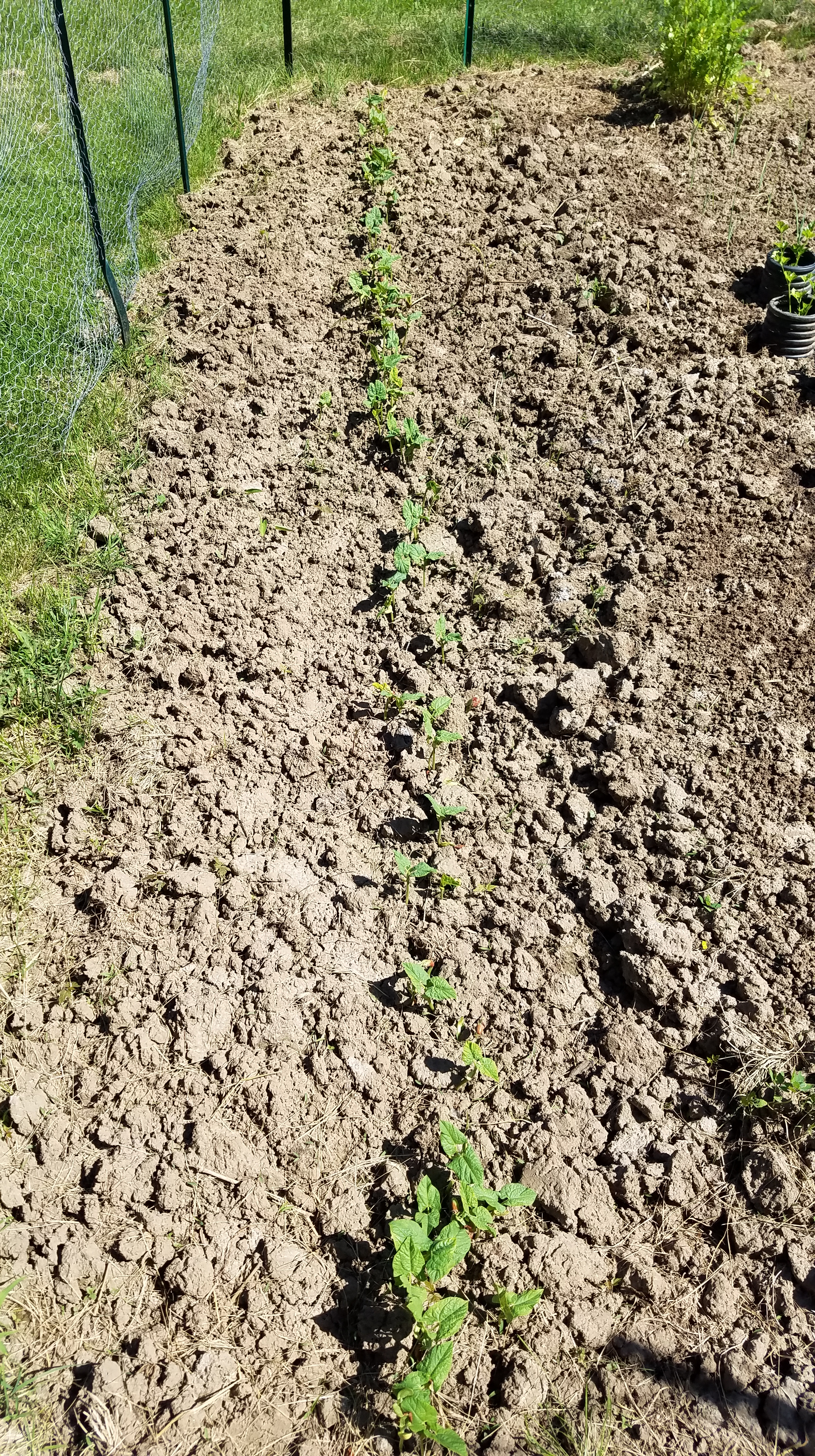 I planted Table Queen Acorn squash (Ferry – Morse, 75 days) and Honey Bear Acorn squash (Johnny’s Selected Seeds, 85 days) in newly claimed space. Acorn is our favorite winter squash so here’s hoping they succeed.