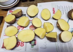 We cook potatoes in four primary ways: roasting; grated to make hash browns; as an ingredient in soup; and boiling. All of the smallest ones are used for soup. Every once in a while I use boiled potatoes to make potato salad. Whatever I make with potatoes gets eaten up because they are especially good.