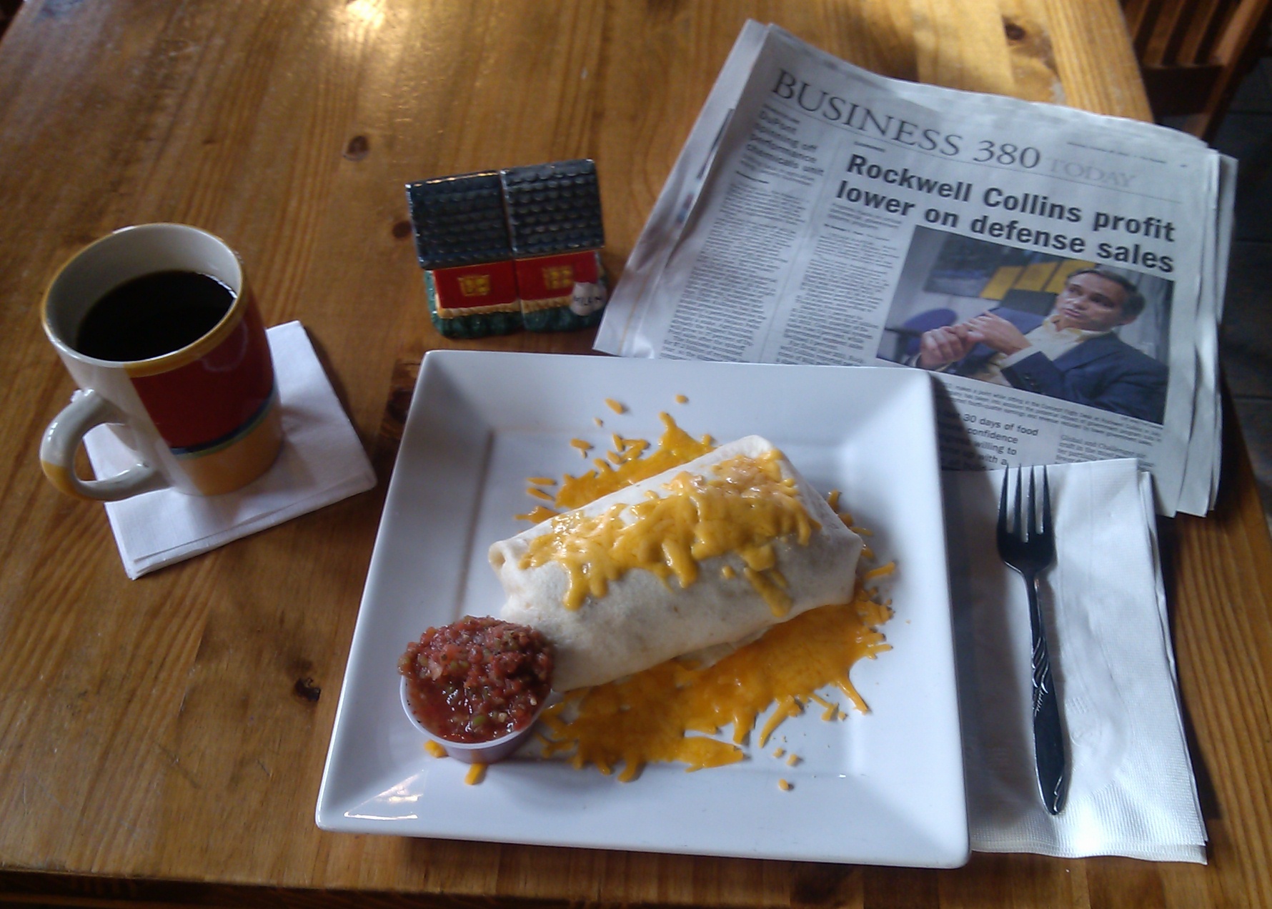 In between jobs, I stopped for breakfast, and was the only customer in the place. Not sure what, if anything, that means, as it was a Hawkeye home game day, and I am not plugged into the college football season.