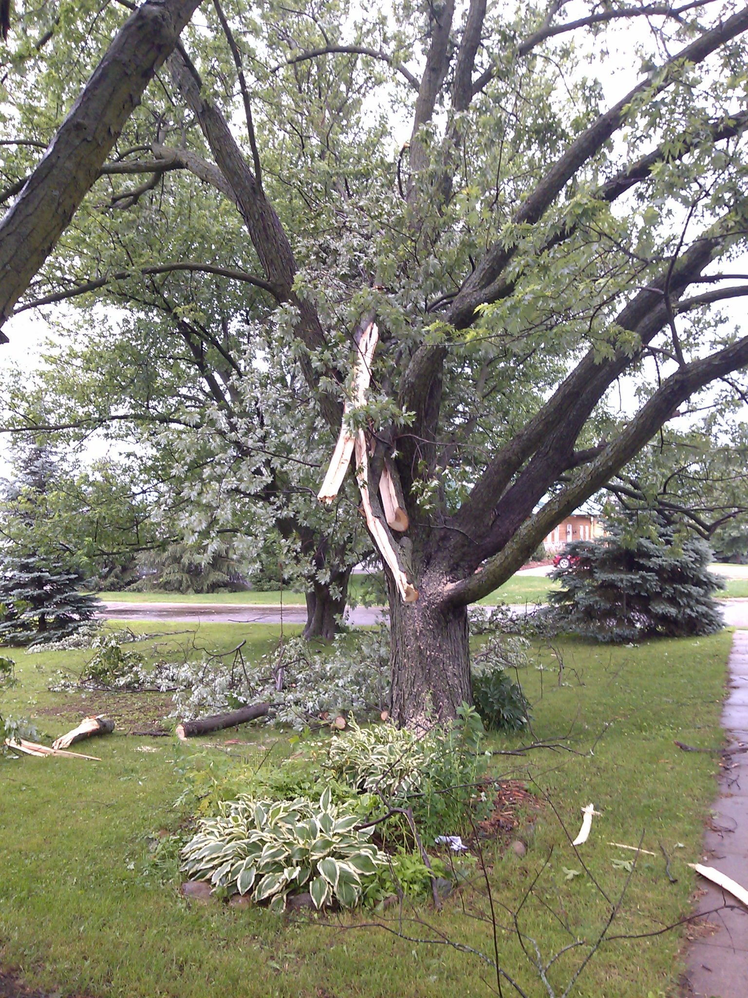 “Our giant old walnut tree came down in the storm taking my farm’s main power line with it as well as my yard light pole,” came the report from our CSA. “The amazing thing is we still have power but until REC gets out here to shut off the power we have live wires on our driveway and the tree is blocking our road. Given the size of the tree I suspect it will take us several days to get the driveway cleared.”