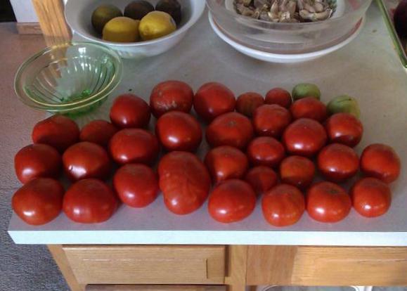 LAKE MACBRIDE— There are six crates of organic farm tomato seconds in various states in our kitchen. Today’s goal is to process them all and have quarts of tomato juice and pints of plain sauce canned and ready before bedtime. I spent about an hour washing tomatoes last night after dinner, and have been at it since 6 a.m. this morning. The tomato deal is an important part of this local food system.