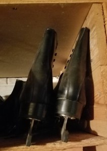 When our daughter was a grader and the lake froze we’d don ice skates and cut a path all the way to the other shore. When snowmobiles plowed by we could feel the ice moving up and down taking us with it. We keep the skates on a shelf in our garage.