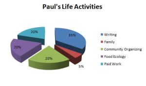 Drawing the pie chart was fairly simple. Making that fit among rigid schedules of paid work, writing and farm work has proven to be challenging. Where I suspect this will end is with a hard schedule that includes writing, food ecology and paid work, leaving everything else flexible.